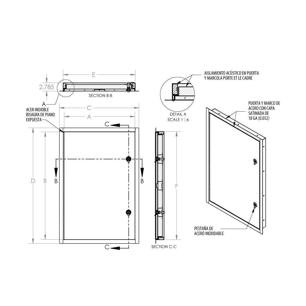 18-gauge door panel, encapsulated design with 2 “thick acoustic mineral coating and 0.11” thick mineral filled vinyl barrier
