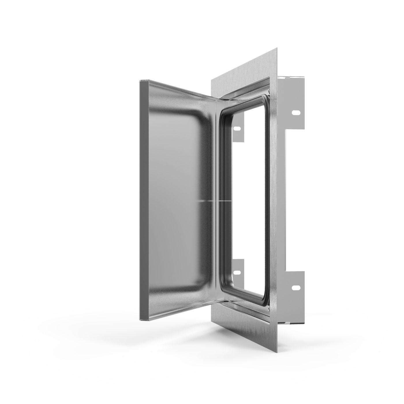 The Acudor ADWT : Steel steel access door is airtight and airtight. The ADWT is ideal for use in laboratories, cleanrooms, operating rooms, and other applications where a tight and airtight seal is required.