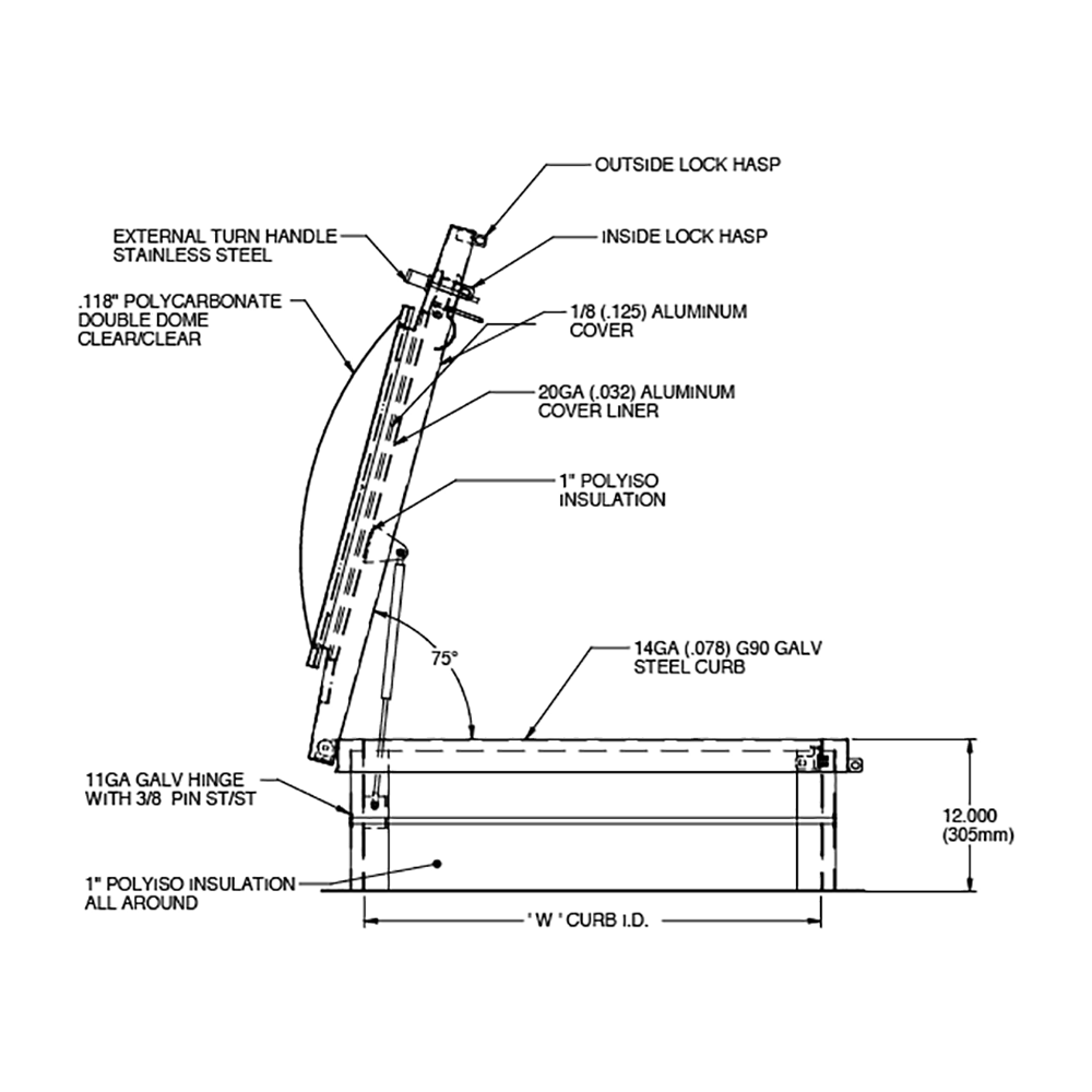 The roof hatch for access with galvanized dome are designed to provide convenient and economical access to the roof of a building. Polycarbonate domes provide the benefit of a skylight.