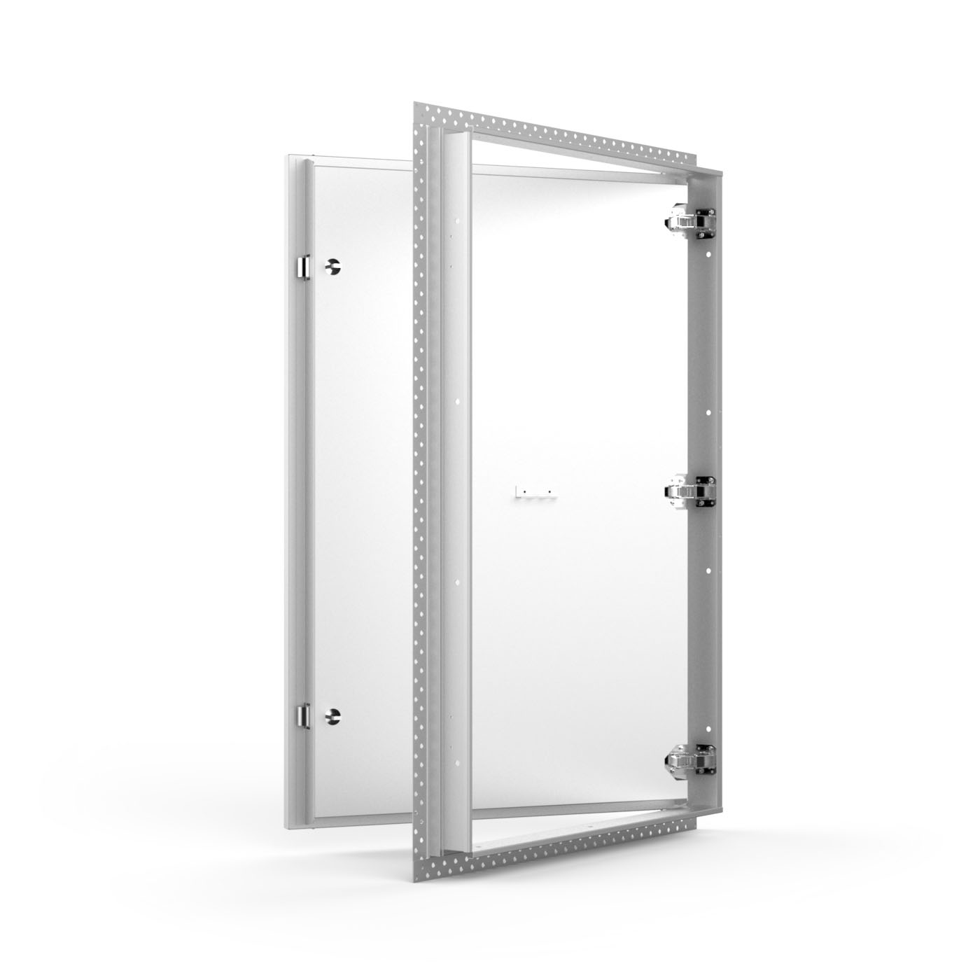 22 gauge steel, recessed and fitted with 5/8″ thick drywall suitable for on-site drywall finishing.
