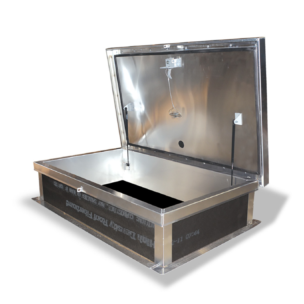 Aluminum roof hatches for internal staircase access are designed to provide convenient and economical access to a building’s rooftop for maintenance