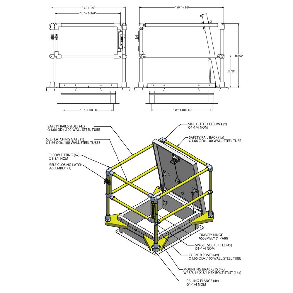 Caution is key when working at heights and is where most of the roof and roof accesses are located. Acudor safety railings are designed for all rooftop hatch applications to help make every workspace as safe as possible.