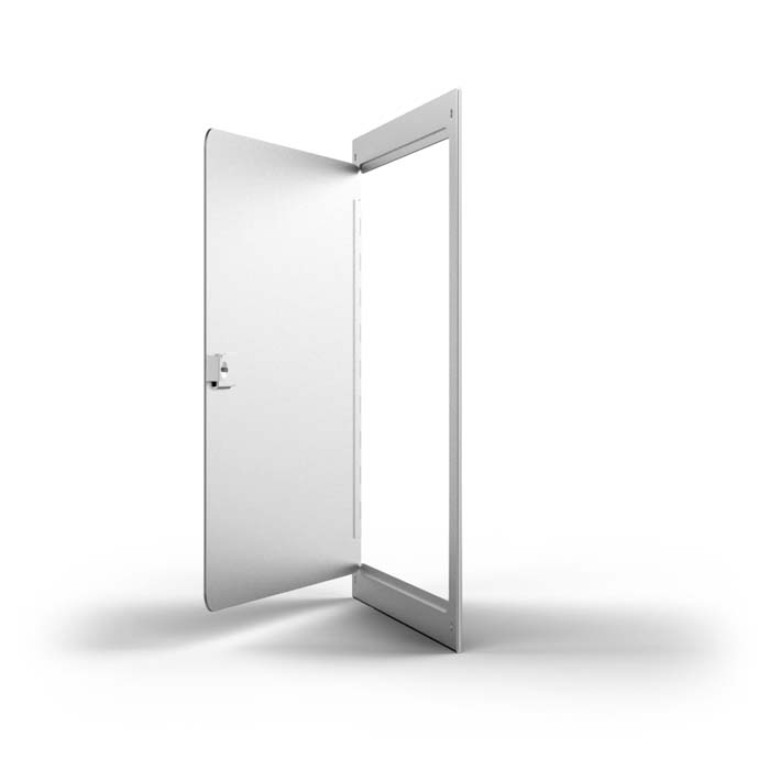 16-gauge door panel, flush with frame with rounded corners, one-piece outer flange