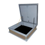 Acudor galvanized equipment access roof hatch, single blade. Acudor are designed to provide convenient and economical access to the roof of a building where larger openings are required. This opening allows equipment to be installed or removed from a building through the rooftop.