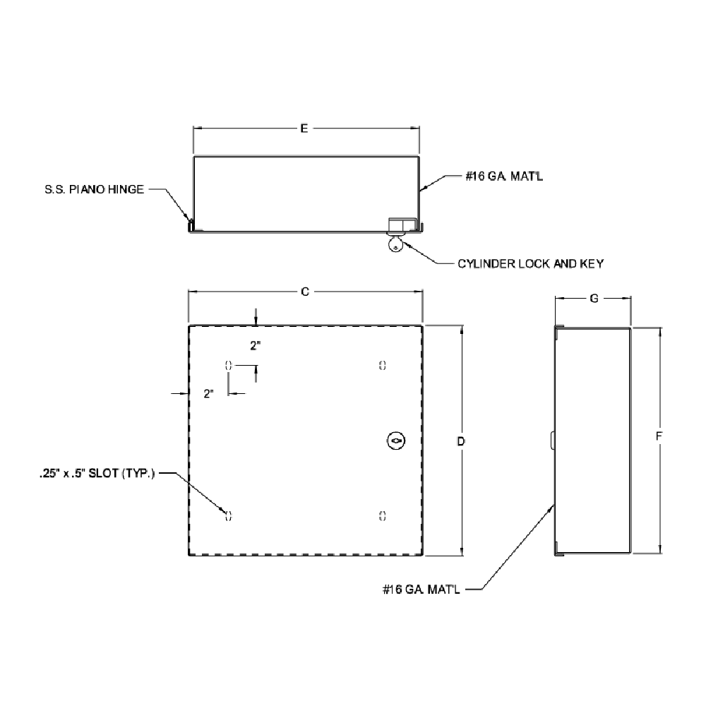 Cerradura de cilindro y llave. También disponible: cerrojo de leva operado con desarmador, cerrojo de leva cabeza allen, cerrojo de leva para llave, manija empotrada a nivel, manija de mariposa,