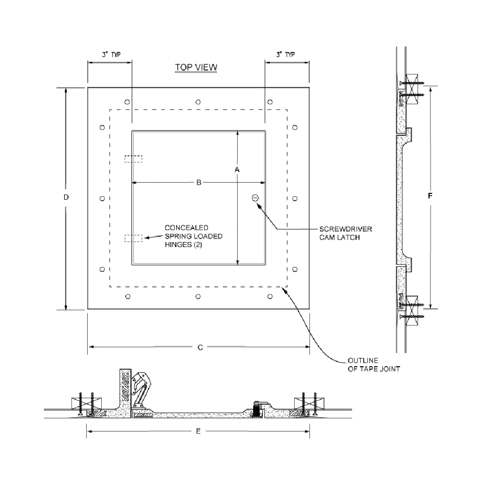 Acudor GFRG-SH : Yeso reforzado con fibra de vidrio, las puertas de acceso a techo están diseñadas para mezclarse perfectamente con techos de tablaroca. La función de bisagras permite que esta puerta se instale en paredes.
